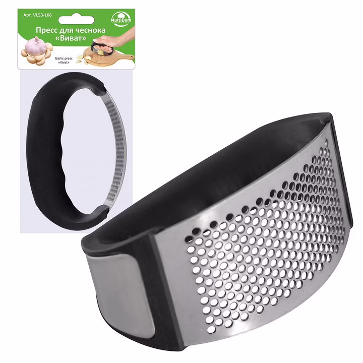 Пресс для чеснока "Виват" – простое и функциональное приспособление для измельчения чеснока. Положите зубчик чеснока на ровную поверхность, надавите прессом, слегка покачайте и раздавите его.