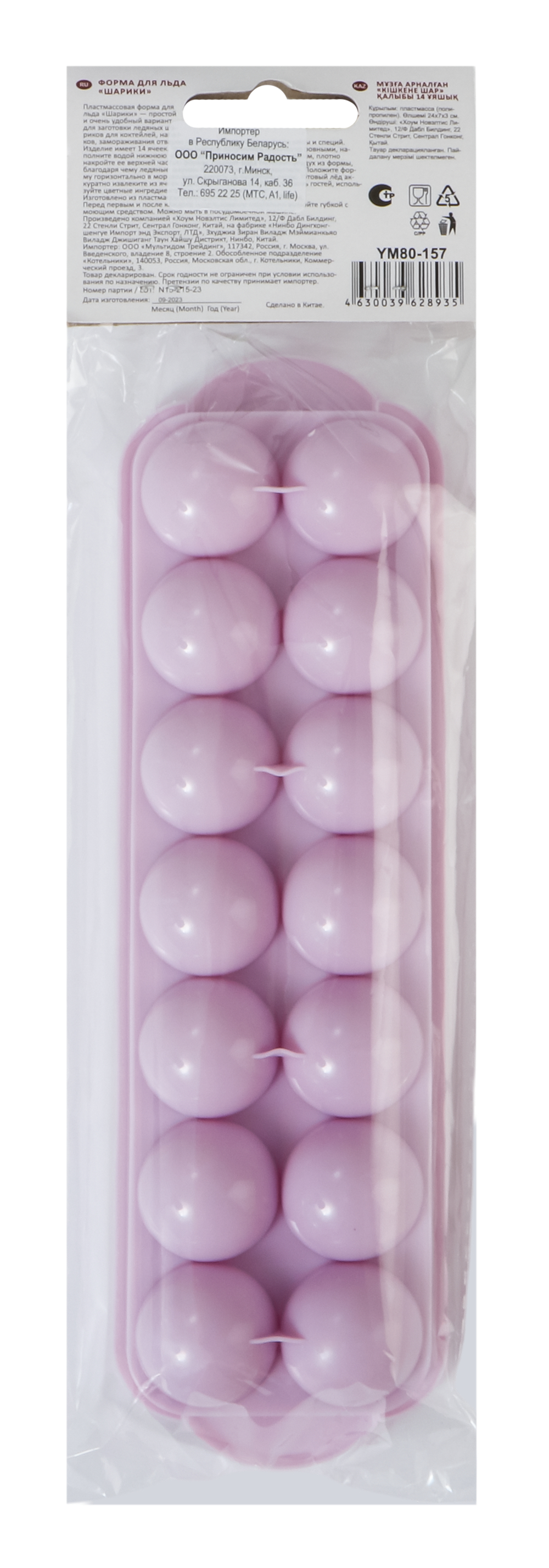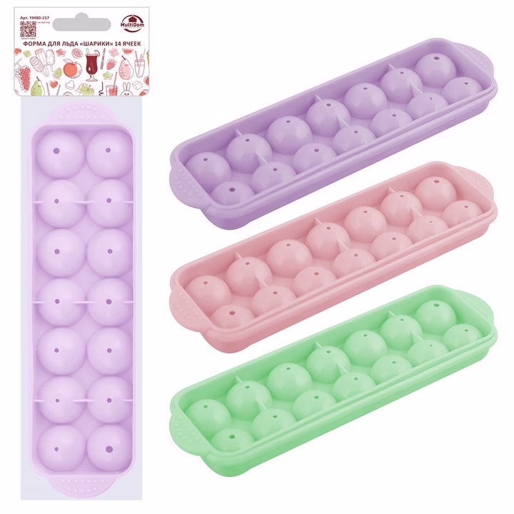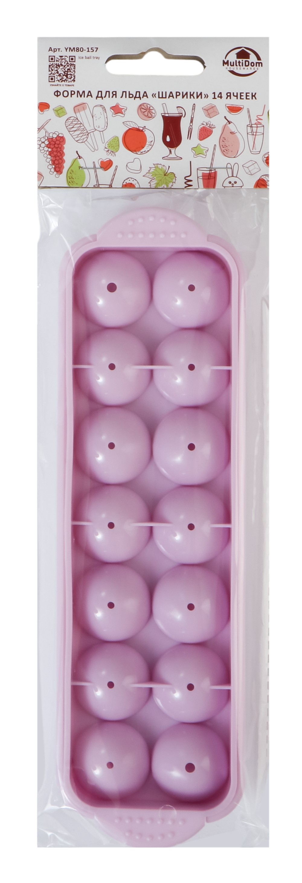 Пластмассовая форма для льда «Шарики» – простой и очень удобный вариант для заготовки ледяных шариков для коктейлей, напитков, замораживания отваров трав, лимонного сока, листьев мяты и специй.Изделие имеет 14 ячеек. Чтобы шарики получились абсолютно ровными, наполняйте закрытую форму через отверстия, расположенные на каждой ячейке. Положите форму горизонтально в морозильную камеру на несколько часов.Готовый лёд аккуратно извлеките из ячеек и добавьте в напиток. Чтобы удивить гостей, используйте цветные ингредиенты для приготовления льда. Изготовлено из пластмассы (полипропилен).После применения промойте в воде с моющим средством.