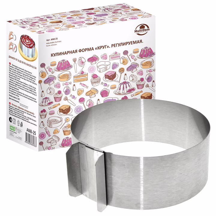 Регулируемая кулинарная форма – настоящая находка в домашнем хозяйстве. С её помощью можно готовить слоёные салаты, оригинальные десерты, выпекать коржи и кексы.