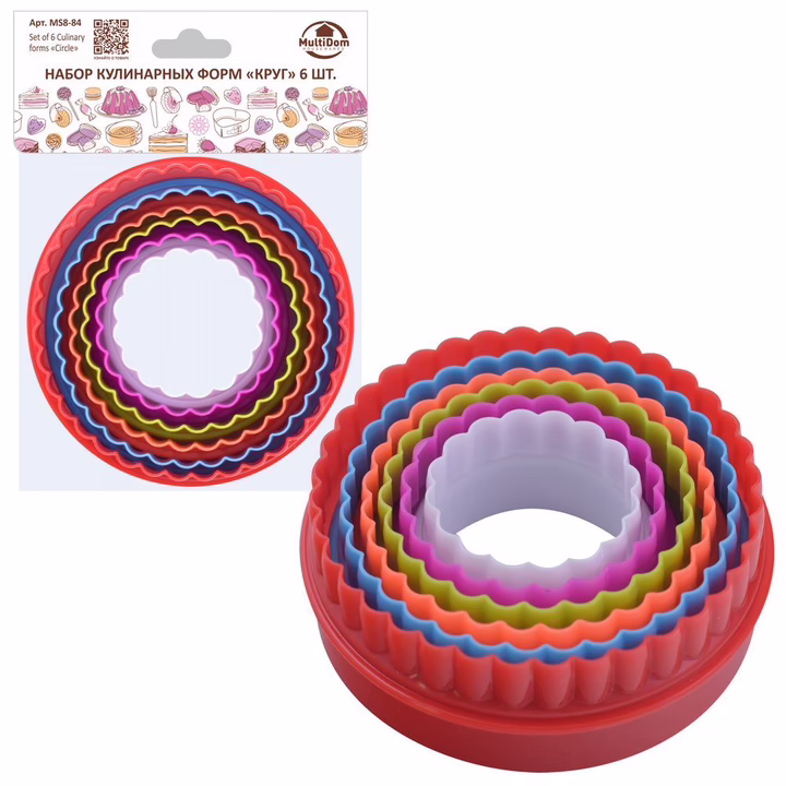 Формы для вырезания печенья помогут вам создать ровные фигурки из теста. В наборе 6 изделий из пластмассы (полипропилена) с диаметрами 5, 6, 7, 8, 9 и 10 см. Вы можете вырезать одинаковые или разные печенья, создавать многоярусные десерты, применять формочки для сервировки. Используйте приспособления в повседневной жизни и для создания праздничных блюд. После применения рекомендуется промыть губкой с использованием жидких моющих средств. Формы удобны в хранении, так как складываются друг в друга.