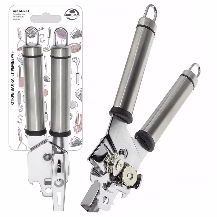 Открывалка должна быть удобной и безопасной в использовании, именно такими характеристиками обладает открывалка "Премьера". Инструмент делает аккуратный и ровный надрез на крышке. Дисковый нож равномерно прорезает металл, делая открывание полностью безопасным, о края крышки невозможно порезаться. Специальная конструкция инструмента позволяет не прилагать лишних усилий и с лёгкостью справляться с консервными банками. Изделие также оснащено приспособлением для открывания бутылок и металлических крышек.