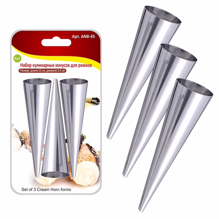 Готовьте дома трубочки из слоёного теста с нежным, тающим во рту кремом, ведь сделать это легко с конусами для рожков. Чтобы сделать пирожные, разрежьте слоёное тесто на полоски, обмотайте внахлёст кулинарные конусы и поместите в нагретую духовку. Выпекайте до готовности, затем остудите. Заполните получившиеся изделия любимым кремом, и ваше пирожное готово! Можно экспериментировать и готовить разное тесто и разные начинки – кремовые, овощные или мясные.