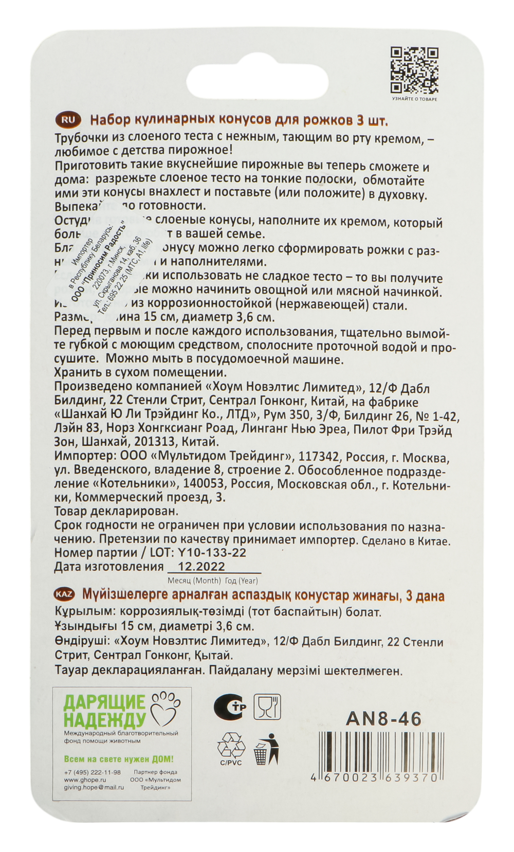 | Импортер | ООО «Приносим радость», 220073, г. Минск, ул. Скрыганова, д. 14, каб. 36. |