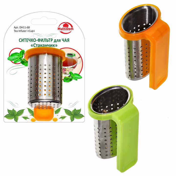 Стаканчик понравился - небольшой, немного шире чайной ложки, можно пить чай не снимая его. Размолотый в труху чай будет из дырочек выходить, а остальной - нет. Заваривается в нем нормально, дополнительного вкуса не появляется.