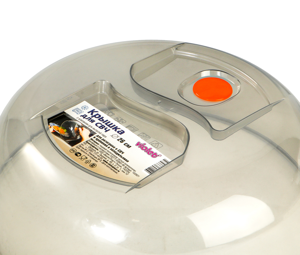 Крышка для СВЧ с клапаном выполнена из качественного пластика и позволяет быстрее разогреть продукты и не испачкать внутренние стенки микроволновой печи. Диаметр крышки 26 см, что позволяет накрыть стандартную тарелку.
