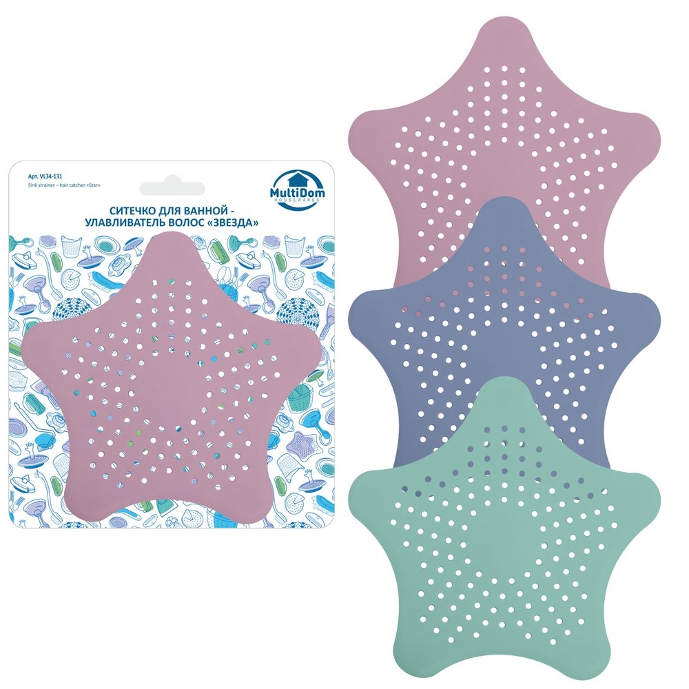 Ситечко выполнено в форме звезды. Оригинальный дизайн украсит вашу ванную комнату или кухню. Изделие изготовлено из TPR – прочного материала, способного длительное время подвергаться воздействию влаги.