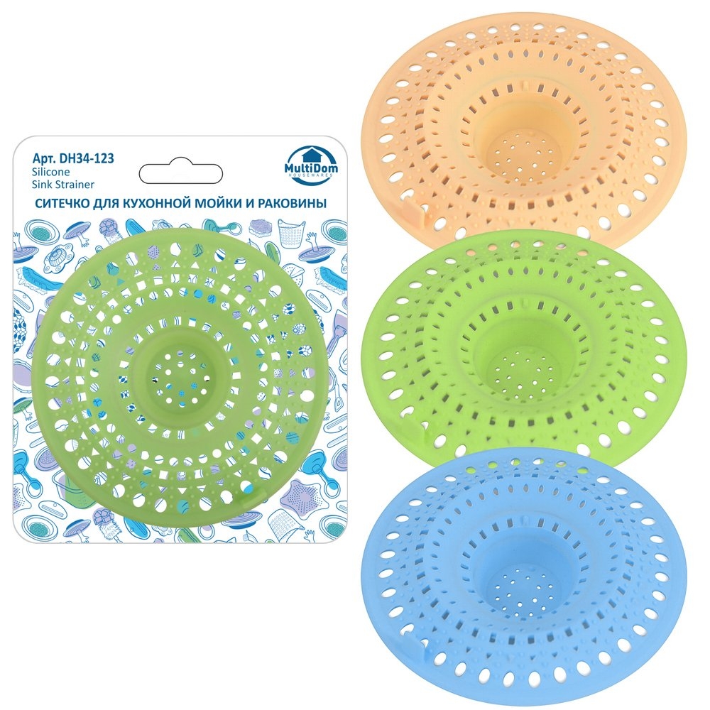 Ситечко для кухонной мойки и раковины поможет предотвратить засоры в трубах. Изделие удерживает частички пищи и другой мусор, попадающий в процессе мытья посуды. Ситечко плотно фиксируется в сливном отверстии и хорошо пропускает воду. Для удаления мусора достаточно вынуть изделие из слива и очистить его. Сеточка для раковины подходит для сливных отверстий диаметром от 5 до 7 см, изготовлена из силикона. Если в процессе использования теряется яркость цвета, это не влияет на качественные показатели.