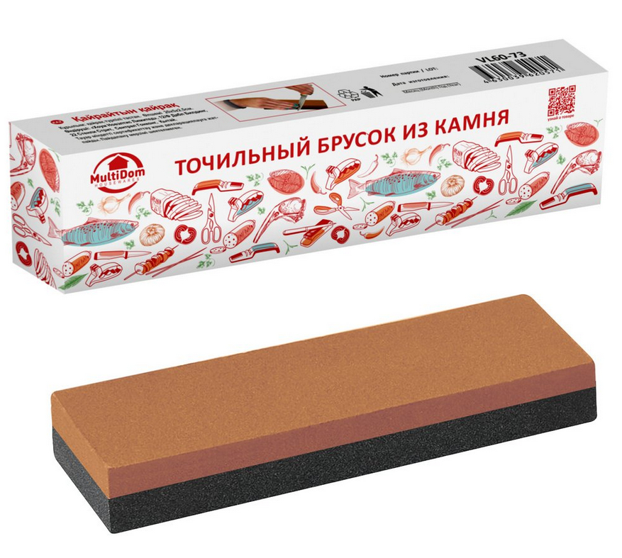 Точильный брусок из абразивного материала – универсальное средство для заточки лезвий ножей и ножниц. Материал, из которого изготовлен брусок, представляет собой абразив с цементирующей связкой. Брусок подойдет для всех видов кухонных ножей, нуждающихся в заточке. Инструкция по использованию: смочите камень, зафиксируйте нож под углом 20-23 градусов, расположите поперек бруска. Следите за тем, чтобы кромка была всегда перпендикулярна направлению движения. Разверните острие от себя и водите по направлению к себе с одинаковым нажимом. Заточите нож по всей длине, затем переходите к второй стороне.