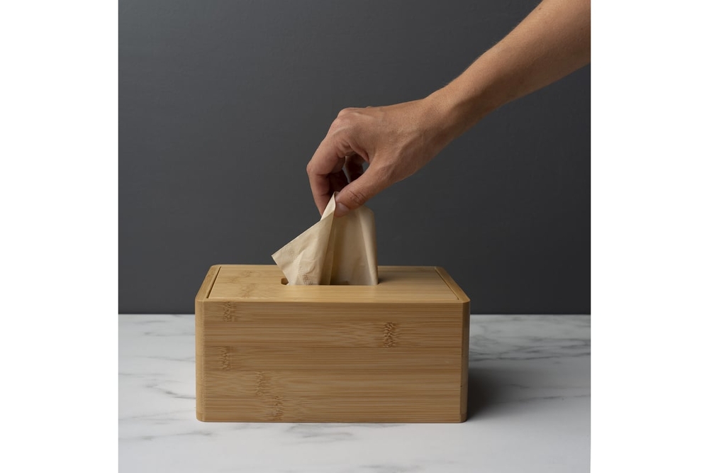Диспенсер для салфеток настольный выполнен из бамбука, что обеспечивает надежность продукта и долгий срок службы. Крышка плотно прилегает к коробке.