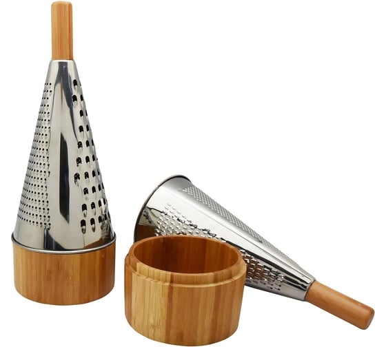 Терка оснащена деревянным контейнером, который позволяет удобно собирать нарезанные ингредиенты без беспорядка.