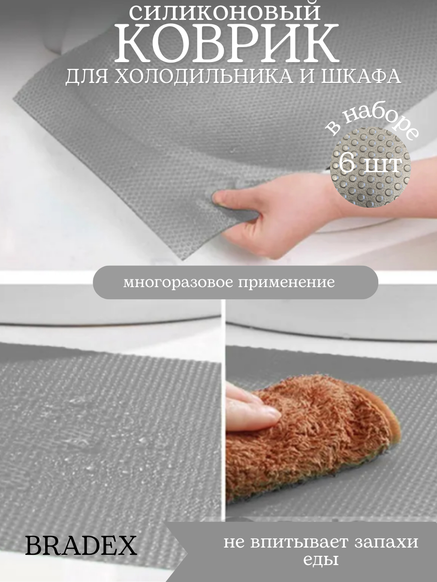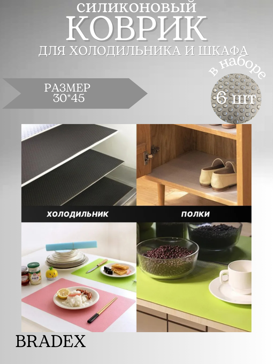 Простые в использовании коврики не заменимы в любом доме! Они универсальны: можно использовать как коврик в холодильник, подоконник, полки для обуви, для сервировки стола. Коврик изготовлен из прочного, нескользящего материала EVA, который поможет сохранить все в вашем холодильнике в порядке и безопасности. Коврики изготовлены из силикона – универсального материала, который легко чистить и удобно использовать.