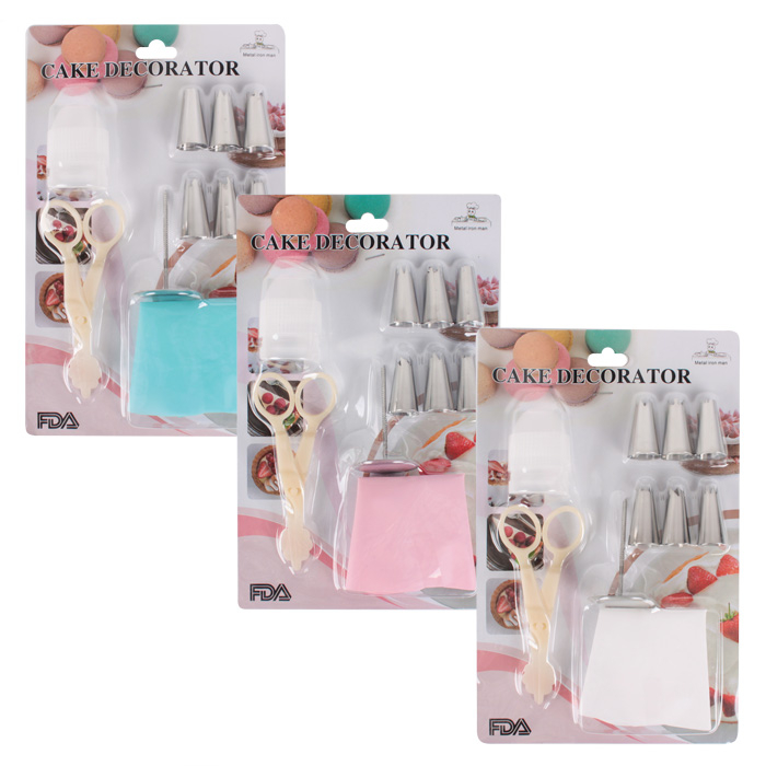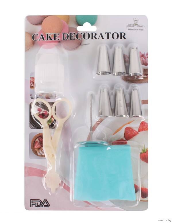 Кондитерский набор для украшения тортов. Набор для украшения тортов состоит из: адаптера (переходника) для кондитерского мешка, ножниц, гвоздика d=4см, мешка кондитерского и 6 насадок.