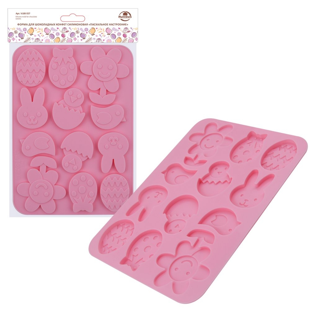Формы подходят для приготовления шоколадных конфет, украшений для десертов и мороженого. Растопите шоколад на паровой бане, залейте его в форму и поместите в холодильник до полного застывания. По желанию добавьте в формочки орешки, кокосовую стружку или карамель. Готовые конфеты не прилипают к форме и легко извлекаются. Выдерживает температуры от – 40 до +220 °С.