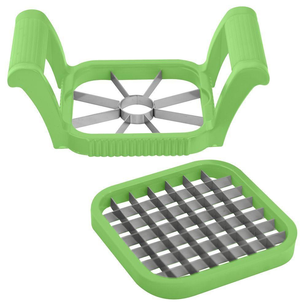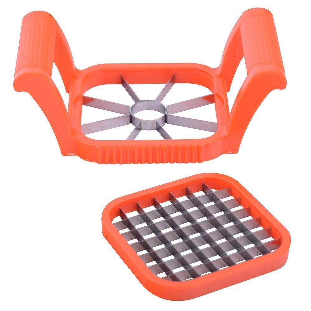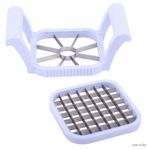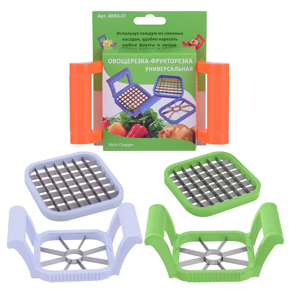 Режьте с помощью сменных насадок картофель, свеклу, яблоки, морковь, яблоки, свеклу и другие продукты. Расположите продукты на столе и аккуратно надавите рабочей частью овощерезки. Держите инструмент за ручки и регулируйте уровень нажима, чтобы получить аккуратные кубики.