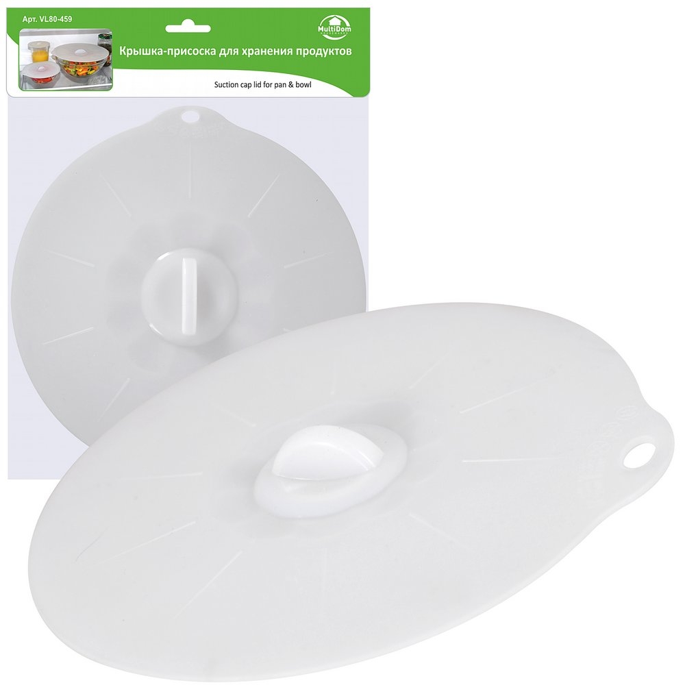 Крышка-присоска предназначена для хранения продуктов в мисках, салатниках, контейнерах и другой посуде диаметром до 14 см. Она препятствует попаданию внутрь пыли, посторонних запахов и предметов.