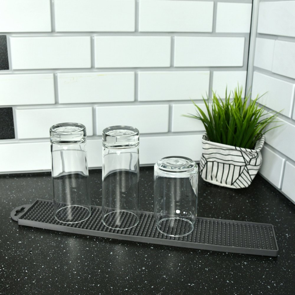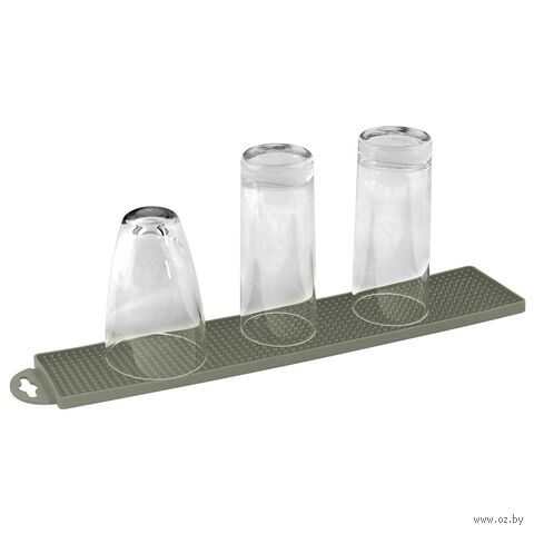 Положите коврик на край кухонной мойки, поставьте на него кружки и стаканы горлышком вниз. Лишняя влага стечет и посуда будет чистой и сухой. Специальная перфорация предотвратит запотевание стаканов.