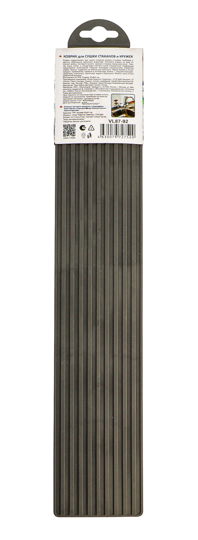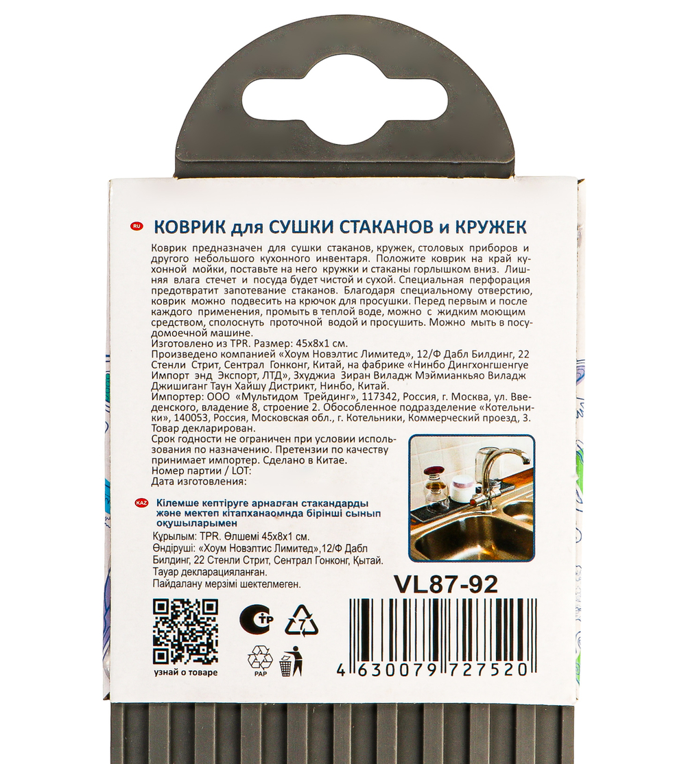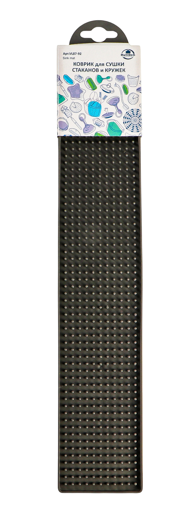 Коврик предназначен для сушки стаканов, кружек, столовых приборов и другого небольшого кухонного инвентаря.