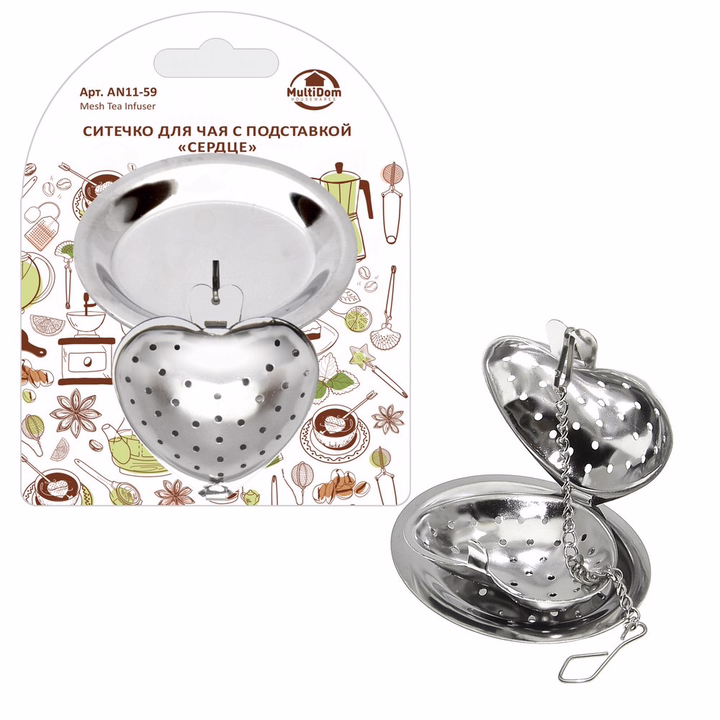 Ситечко плотно закрывается, и вы получите ароматный напиток без остатков заварки. Блюдце-подставка используется для размещения ситечка после заваривания чая. Для удобства использования есть цепочка, с помощью которой удобно погружать предмет и доставать его из кружки. Очень полезный в доме предмет станет полезной покупкой или приятным подарком для родных и близких.
