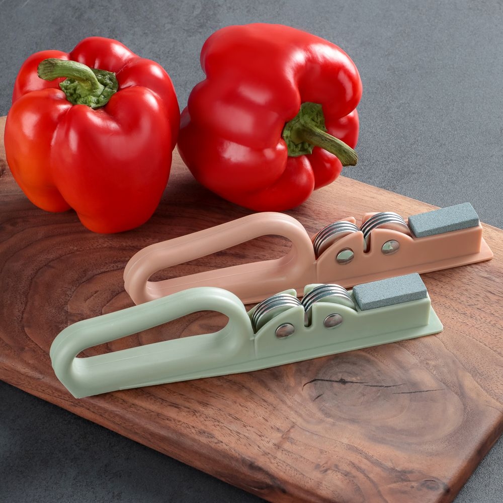 Ножеточка в блистере создана из металлических элементов и пластикового корпуса. Она всегда качественно и быстро позволит затачивать ваши ножи.