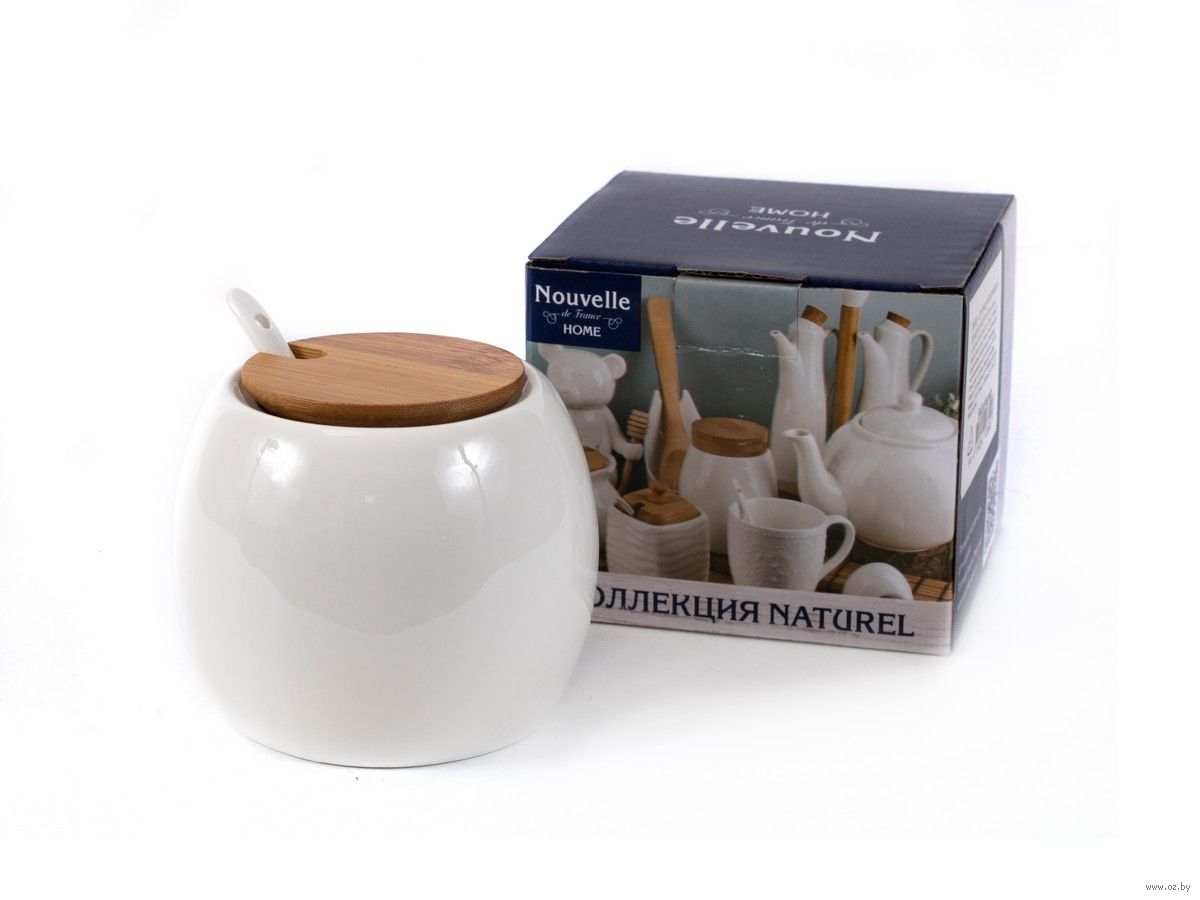 Сахарница с ложкой на бамбуковой подставке "Naturel" используется для хранения сахара и сервировки стола.