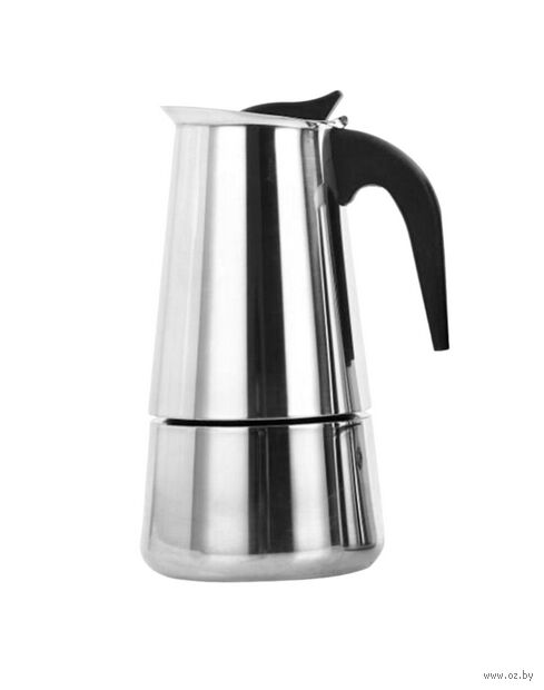 Кофеварка гейзерная металлическая с пластмассовой ручкой используется для приготовления кофе на 6 чашек.