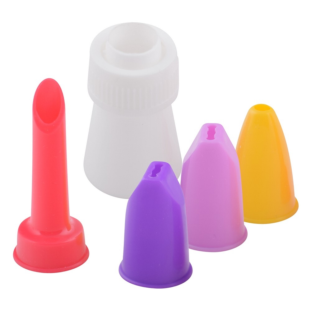 Внешний вид рисунков и форма завитков всегда зависят от расположения прорезей. Для декора одного кондитерского изделия можно использовать несколько типов насадок.