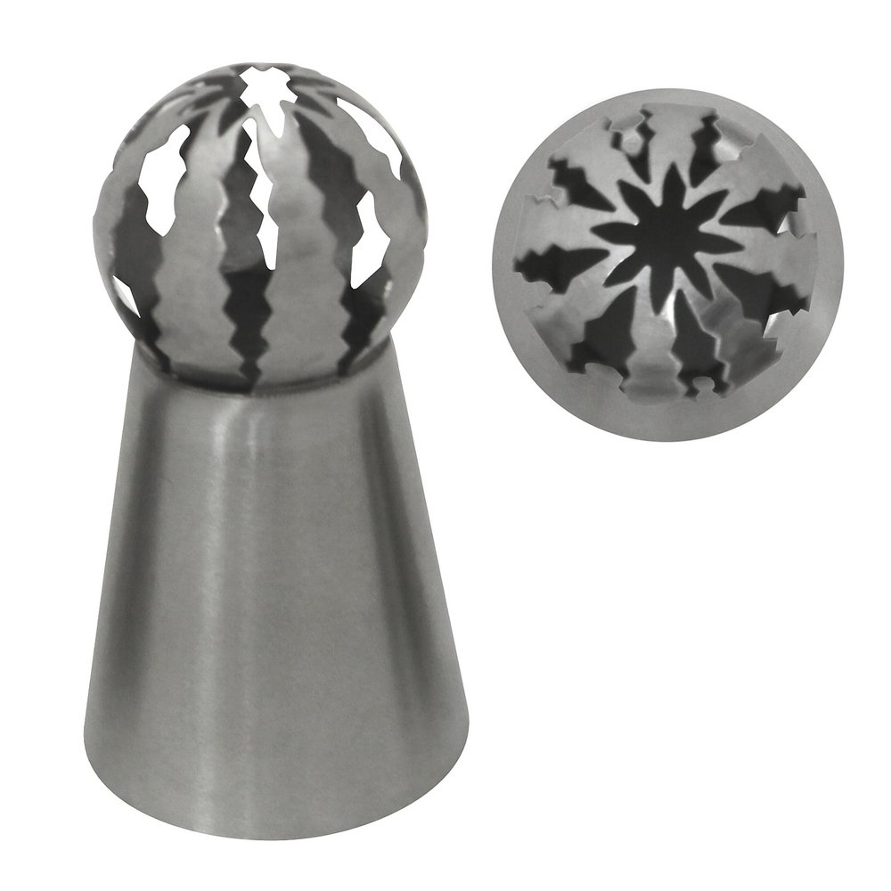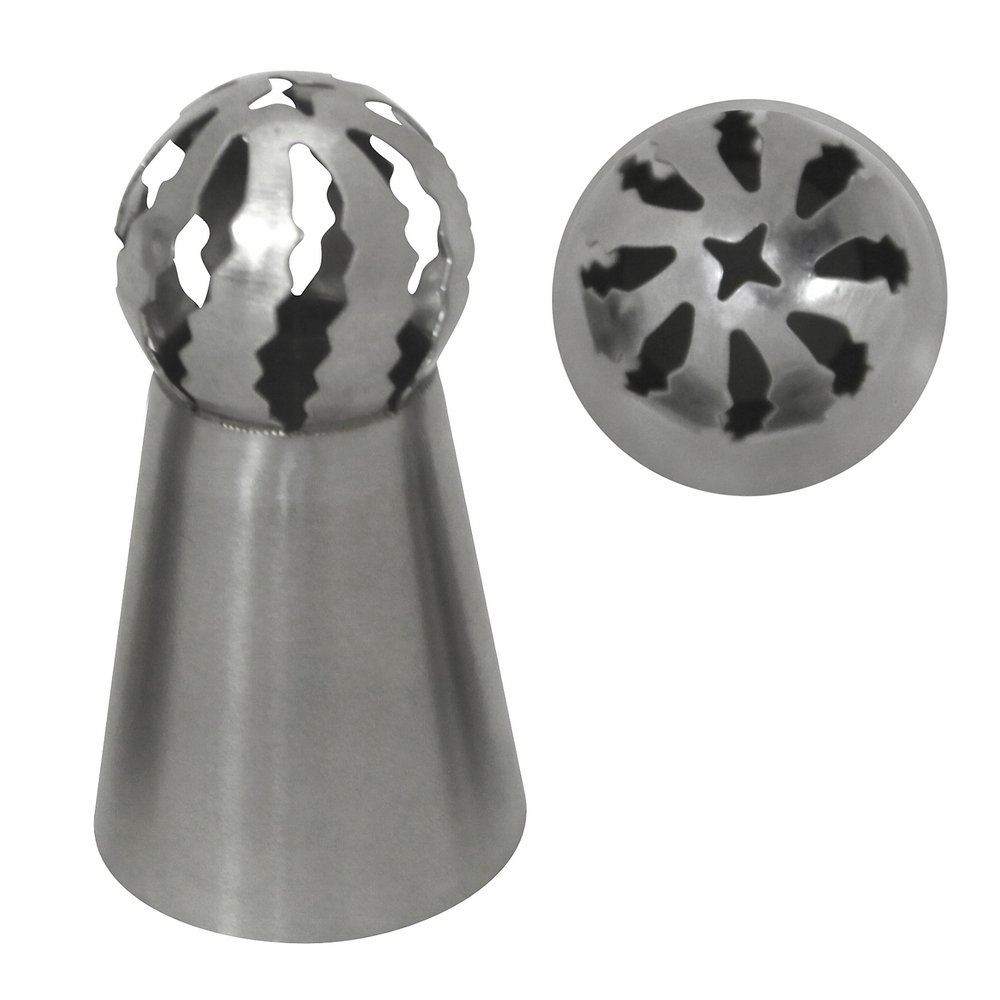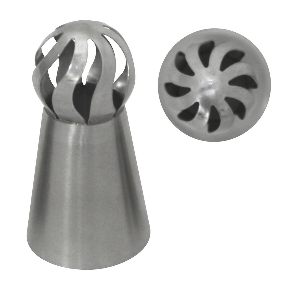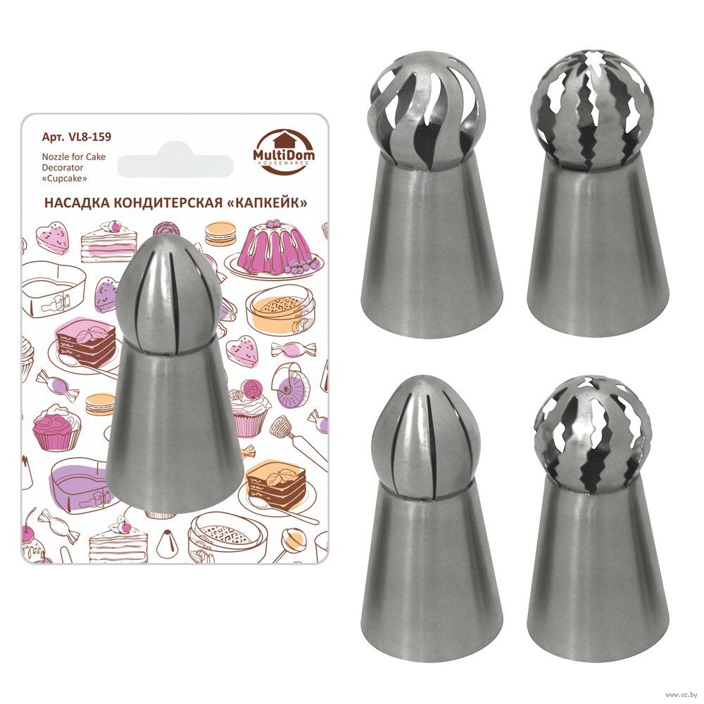 Насадки типа "восточная роза" идеально подходят для украшения капкейков. С помощью приспособления можно сделать объемные высокие шапочки из крема. Особенность рисунка крема будет зависеть от расположения прорезей, они могут быть ровными, волнистыми, ажурными. Насадки из нержавеющей стали не портятся во влажной среде, не гнутся и не ломаются. Разрезы расположены симметрично, это обеспечивает ровный декор.
