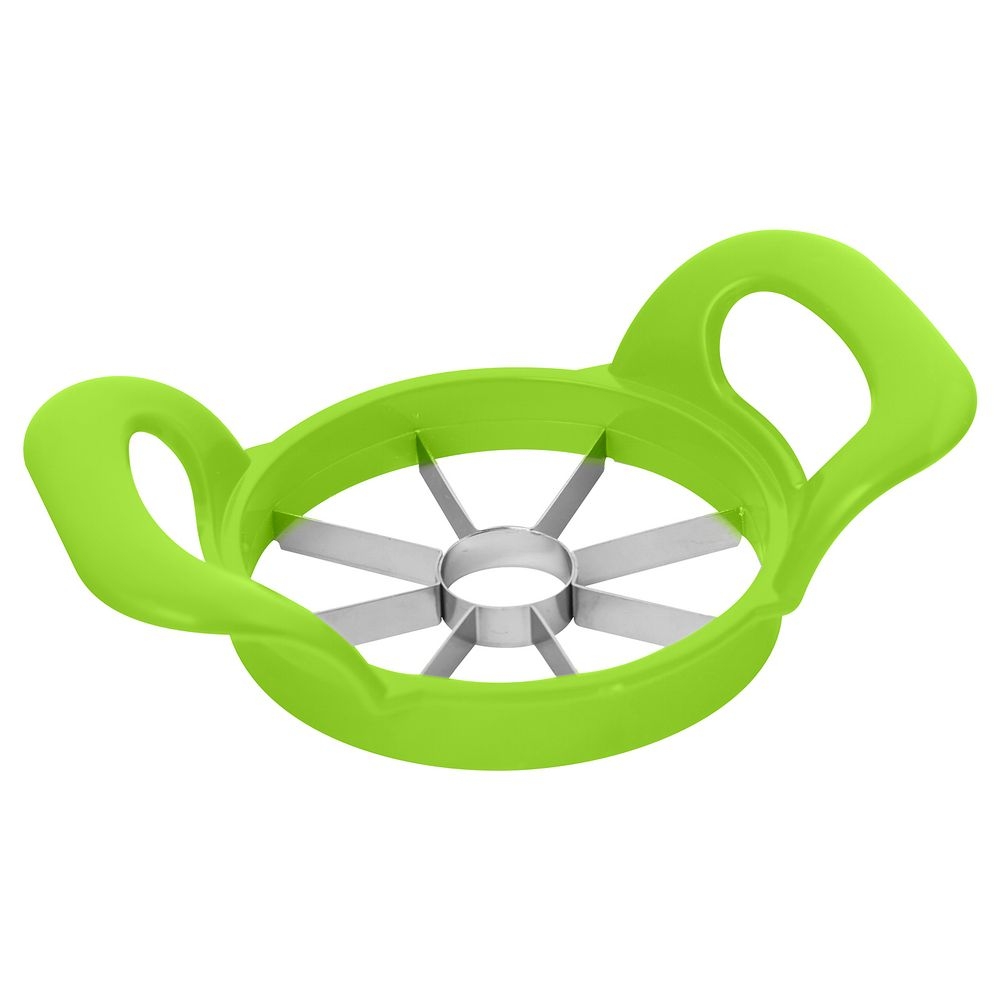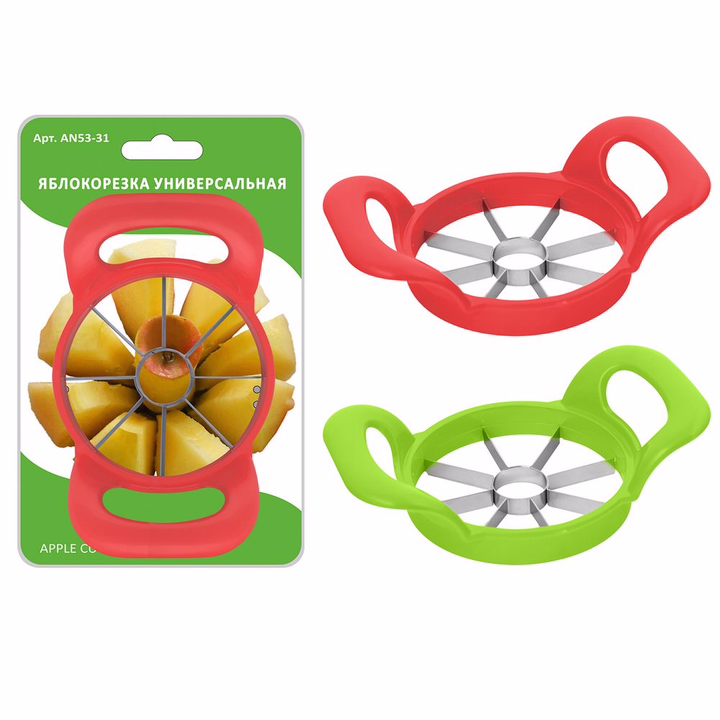 Универсальная яблокорезка предназначена для быстрой и удобной нарезки яблок и удаления сердцевины. Всего одним нажатием вы разрежете фрукт на ровные дольки, отделив при этом сердцевину. Очень удобный инструмент для нарезания яблок для подачи на стол, для угощения детей или на заготовки.