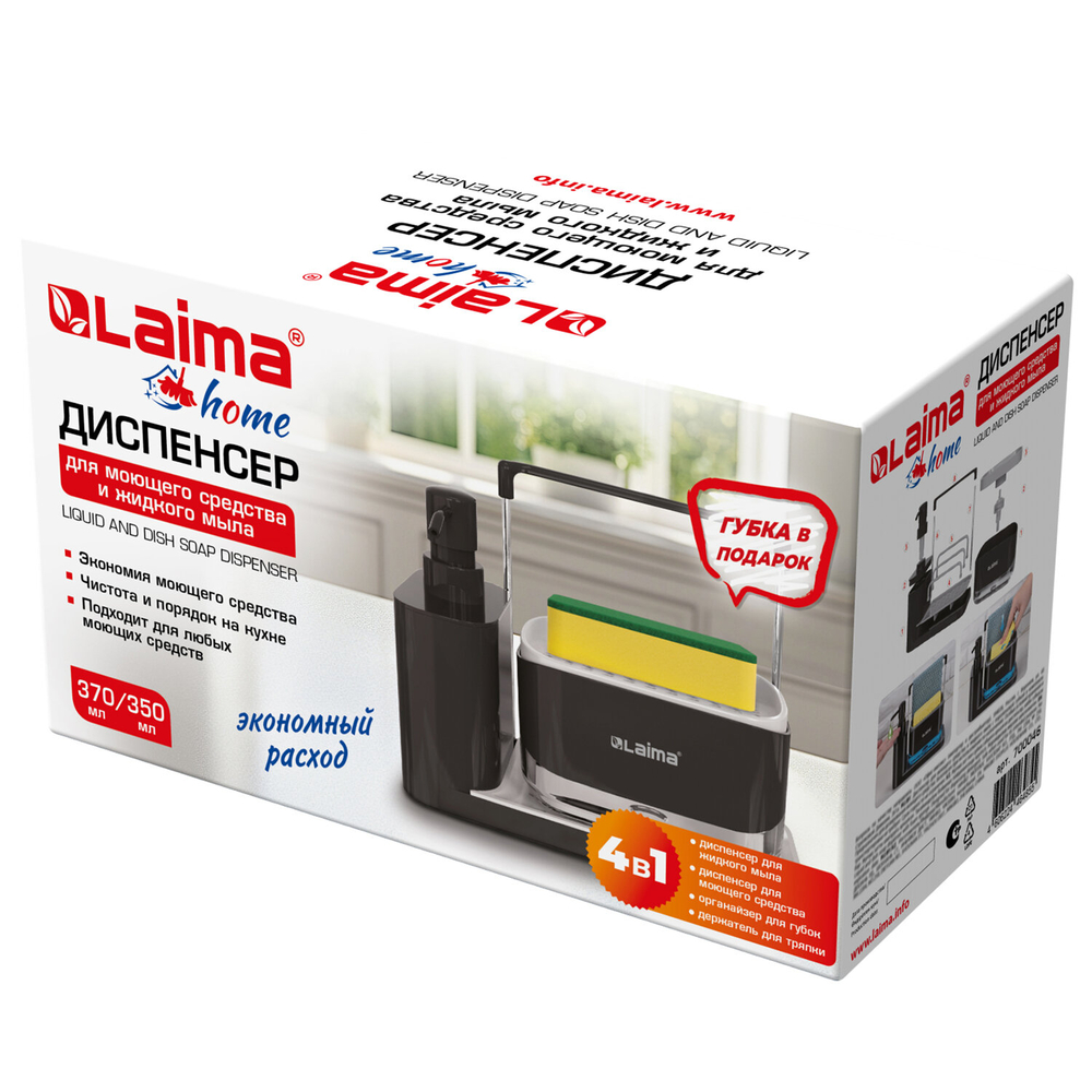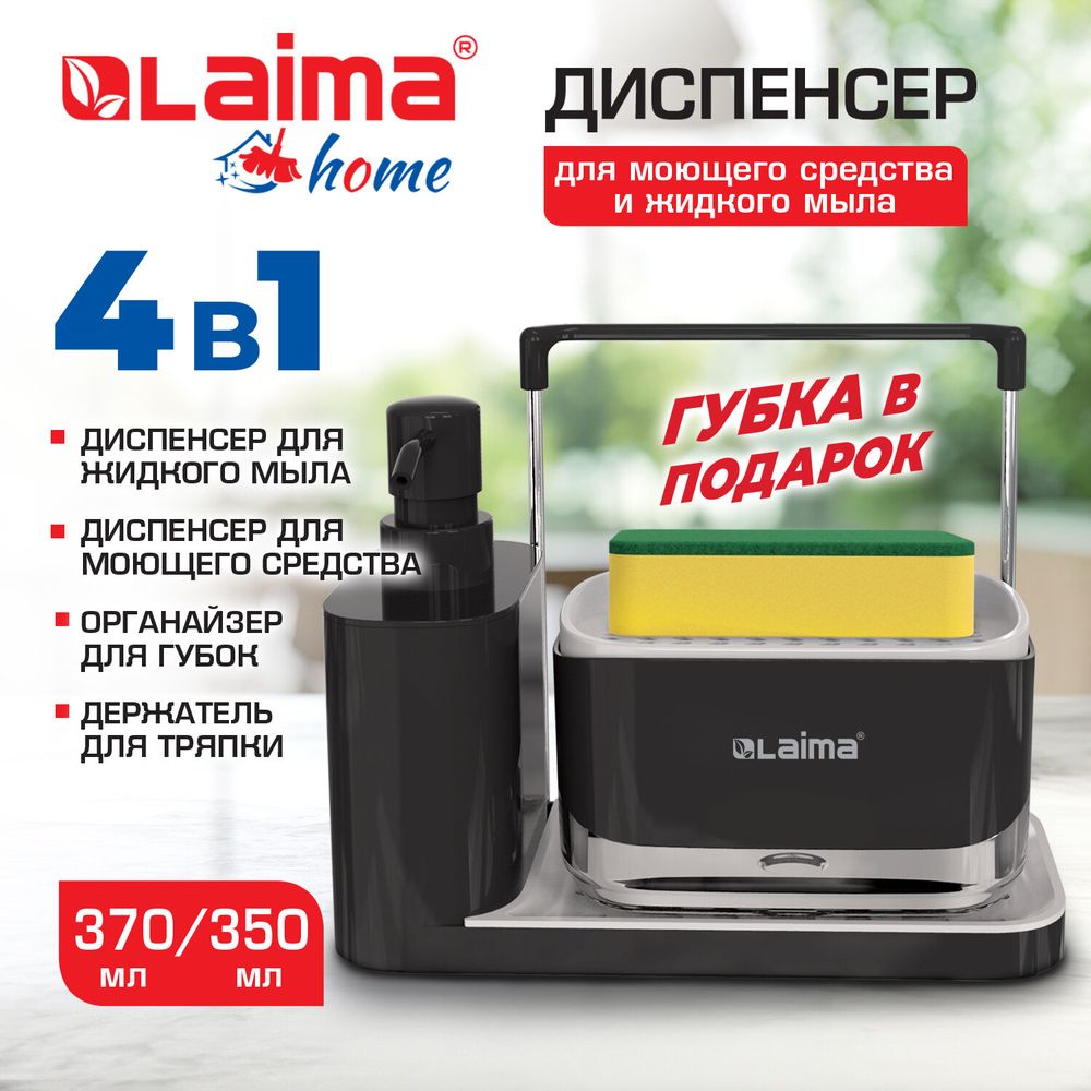 Диспенсер для жидкого мыла и моющего средства – идеальное решение для вашей кухни или ванной комнаты. Устройство оснащено держателями для тряпки и губок. Теперь поддерживать чистоту стало проще, чем когда-либо.