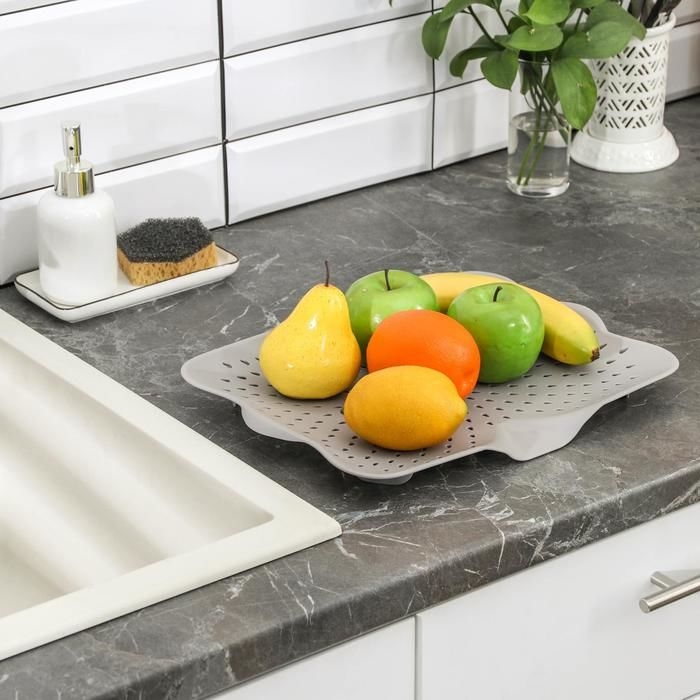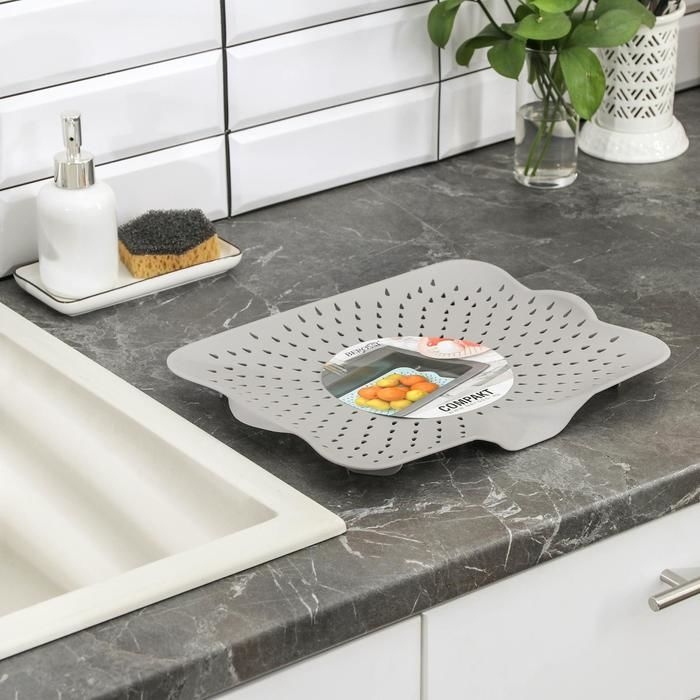Поддон-сушилка для раковины пластмассовая "Compakt" – это универсальное изделие, при помощи которого вы можете просушивать посуду в раковине, не занимая всю столешницу. Также функциональная сушилка для раковины точно пригодится в качестве дуршлага для промывки овощей и фруктов. В поддоне предусмотрены специальные фигурные отверстия для оттока воды. Ножки на дне предотвратят контакт продуктов с поверхностью раковины. Практичный материал не теряет внешний вид и легко моется.