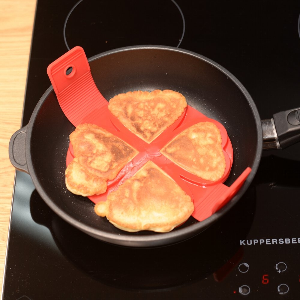 Форма предназначена для приготовления оладий, толстых блинов и яичницы. Пользоваться формой очень легко: разогрейте сковороду, при необходимости смажьте ее маслом, расположите форму в центре и залейте ячейки тестом; через пару минут переверните на другую сторону с помощью специальных ручек; затем извлеките готовые оладьи на тарелку.