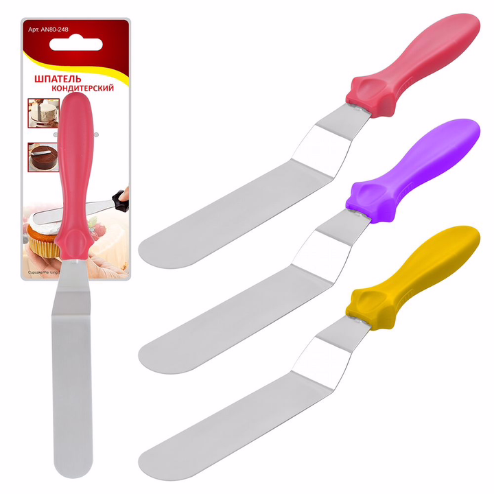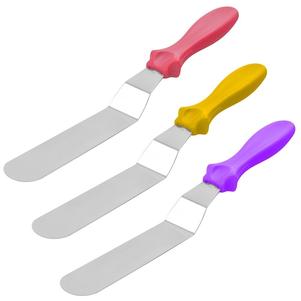 Для декорирования тортов и другой выпечки используется большое количество инструментов. Один из них – кондитерский шпатель, с помощью которого сглаживаются неровности, наносится крем, сливки, шоколад на верх и боковины торта.