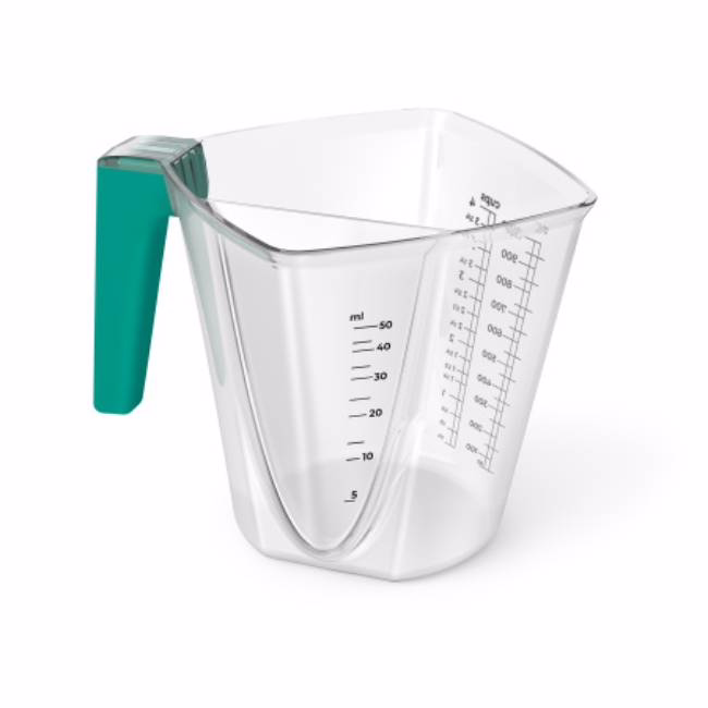 Мерная кружка "Omni" сочетает в себе два отсека, обеспечивающих точное измерение даже минимальных объемов – начиная с 5 мл. Её максимальный объём составляет 1000 мл.