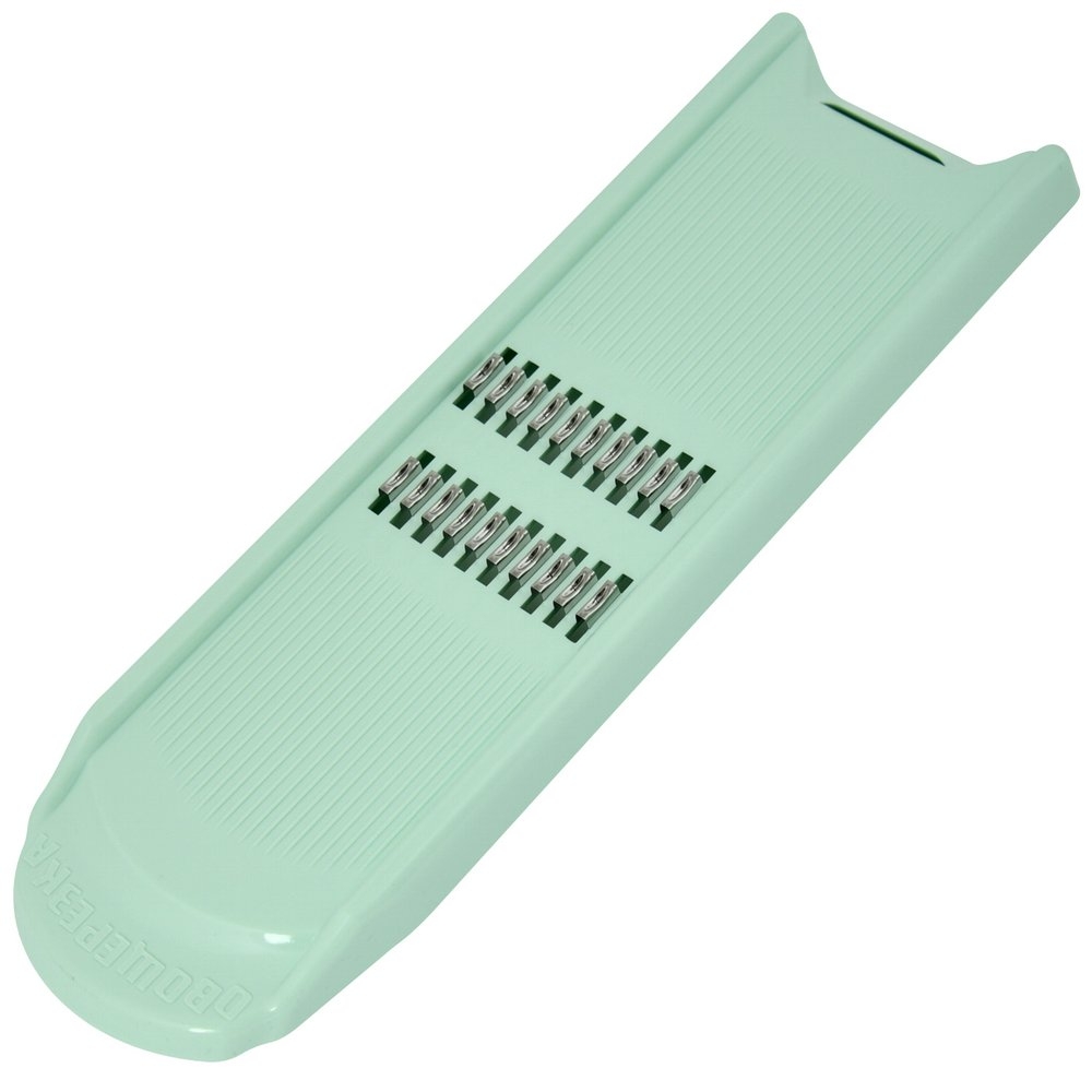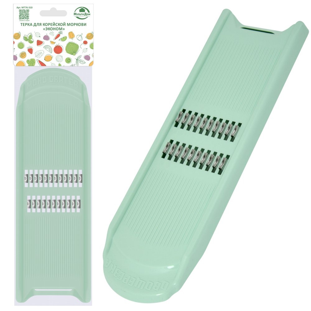 Рабочая поверхность изделия выполнена из коррозионностойкой стали, корпус из пластмассы. Сталь не вступает в реакцию с пищей, не ржавеет, длительное время сохраняет прочность. Пользоваться приспособлением легко: овощи натираются в заранее подготовленную ёмкость. Тёрка подойдёт для измельчения морковки, огурца, редиса, кабачков. В результате получаются соломки, которые можно добавить в салат или украсить ими готовые блюда. Использование овощей разных цветов позволяет получать разноцветную соломку, которая будет отличным декором. Тёркой для корейской моркови очень просто пользоваться, она занимает мало места, удобна в хранении, не требует особого ухода.