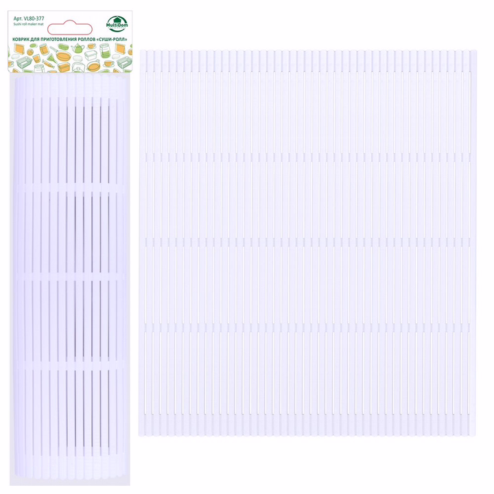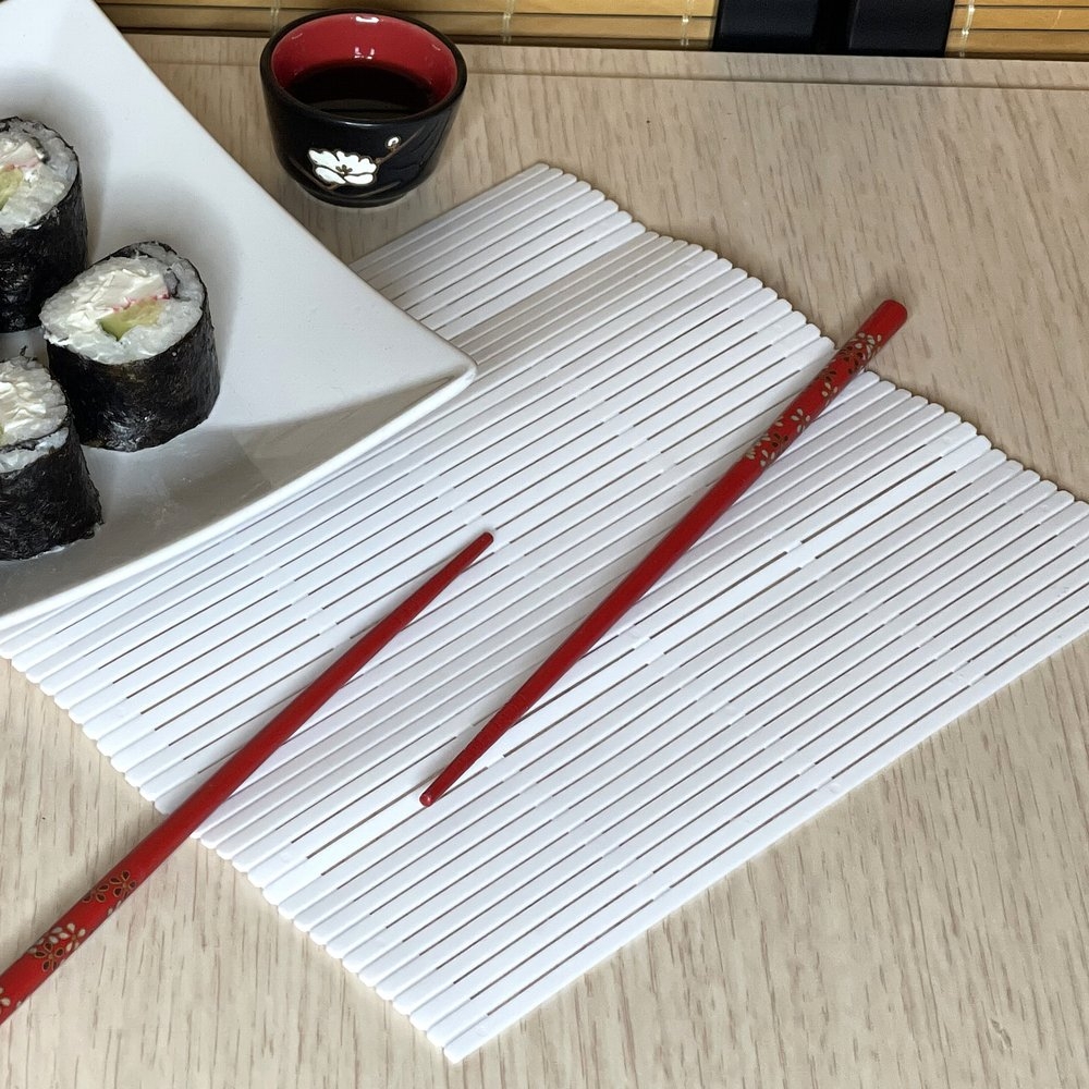 Коврик подходит для начинающих и продвинутых кулинаров, легко сворачивается и не ломает листы нори. Для вашего удобства перед использованием можете обернуть коврик в пищевую плёнку и его не придётся мыть, но и без неё за ковриком легко ухаживать: аккуратно промойте под тёплой водой, хорошо просушите, и он готов к повторному использованию. С этим ковриком роллы готовятся быстро и легко.