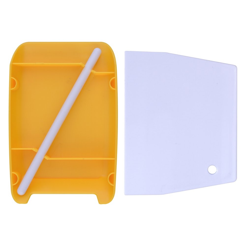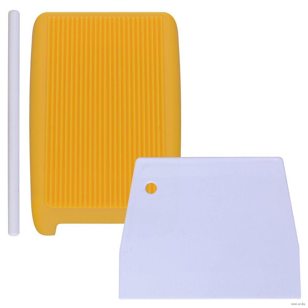 Размеры: платформа – 16х10,5х2,5 см, шпатель – 13х9 см, палочка-скалка – длина 16,5 см.
