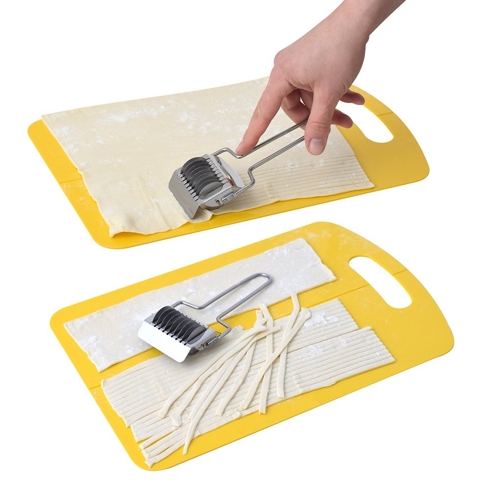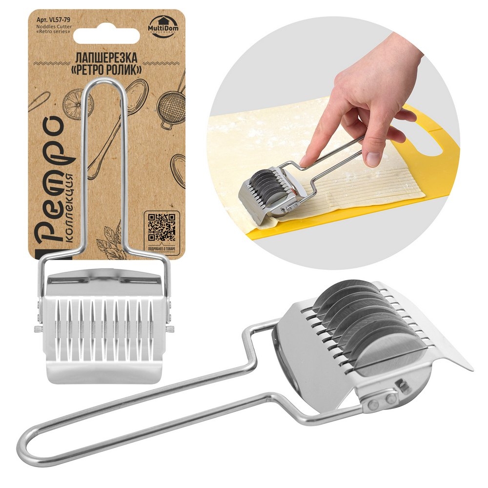 Лапшерезка предназначена для приготовления лапши в домашних условиях. Удобное приспособление поможет вам сократить время, затрачиваемое на нарезание лапши. Одним движением ролика вы сможете нарезать лапшу, не прикладывая при этом особых усилий. Достаточно раскатать приготовленное тесто нужной вам толщины и приступить к нарезке лапши роликом. Домашняя лапша готова! Больше нет необходимости покупать лапшу в магазине, Вы можете приготовить ее дома.
