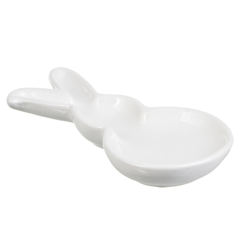 Декоративная тарелка в форме зайца выполнена из качественной керамики и станет оригинальным украшением интерьера.