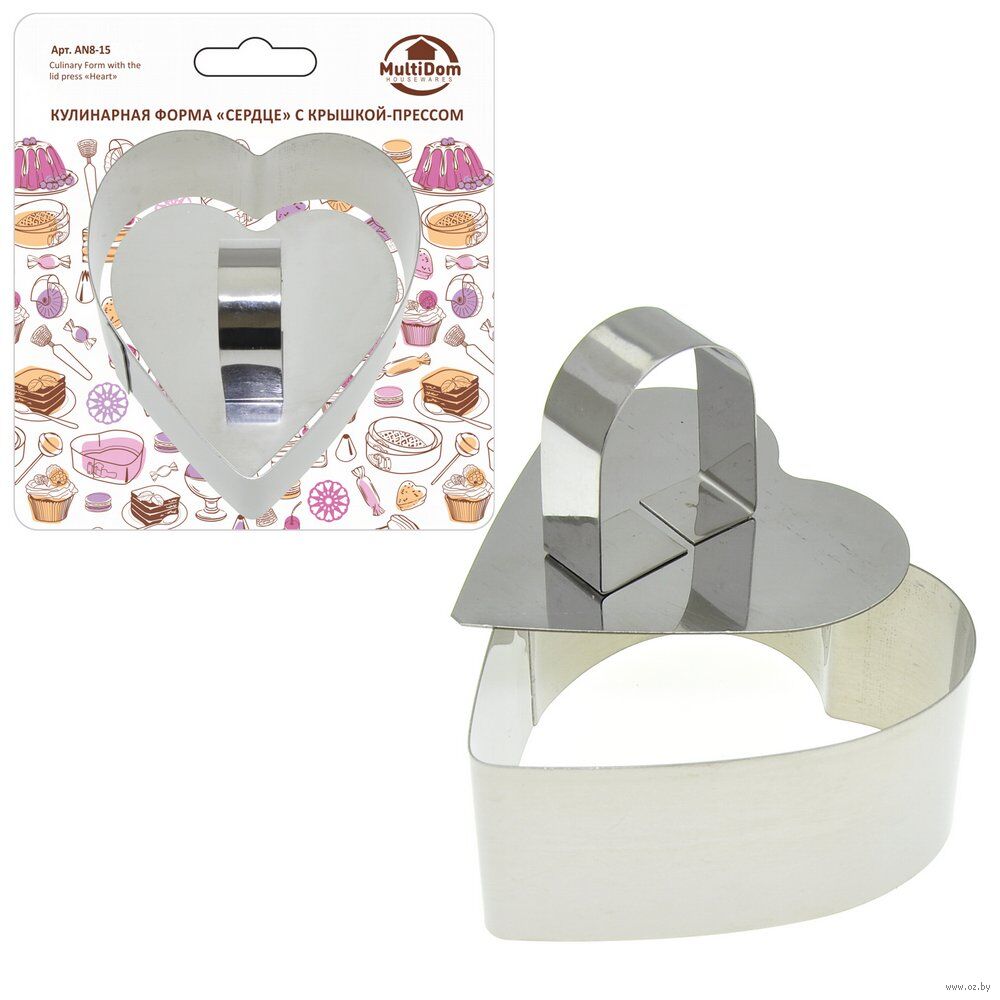 Кулинарная форма – универсальное приспособление для выкладки салатов, приготовления пирожных, слоеных блюд, жарки яичницы, вырезания печенья. Кулинарная форма "Сердце" поможет вам приготовить повседневные и праздничные блюда, которые вызовут восторг у ваших близких. В комплект входит крышка, с помощью нее можно придать форму продуктам и вытолкнуть готовое блюдо из формочки.
