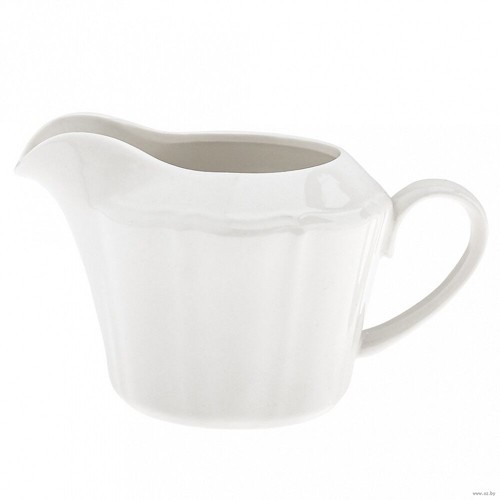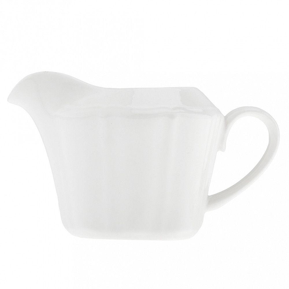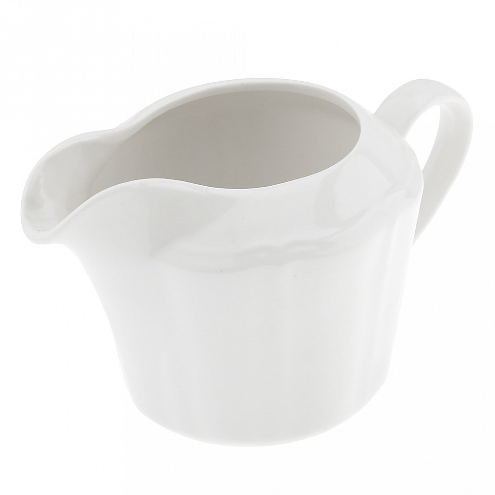 Изящный сливочник изготовлен из высококачественного белого фарфора с удобным носиком.