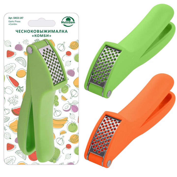 Чеснокодавка – это идеальный пресс для чеснока. Самое удобное приспособление для измельчения чеснока при приготовлении пищи. Эргономичная форма чеснокодавки сделает её использование удобным, а оригинальный дизайн и цветовая гамма украсят вашу кухню. Чеснокодавка выполнена из нержавеющей стали и прочного пластика, не занимает много места. После использования может храниться в отделении со столовыми приборами или на кухонной рейке с любимыми девайсами.