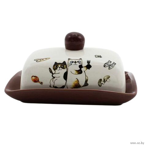 Масленка "Котовасия" – функциональная керамическая посуда для хранения и подачи масла на повседневный и праздничный стол.