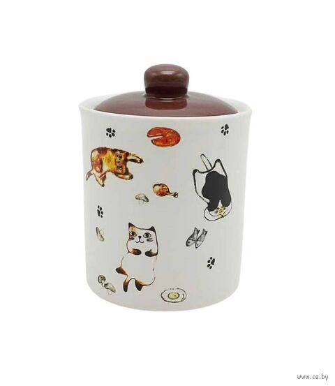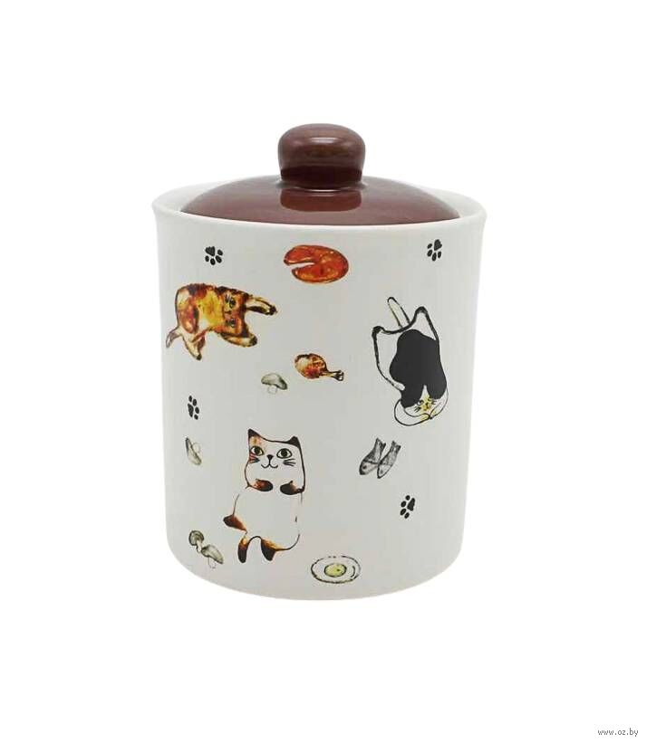 Милый дизайн с изображением котиков привносит тёплую и уютную атмосферу на кухню, превращая сахарницу в декоративный элемент интерьера.