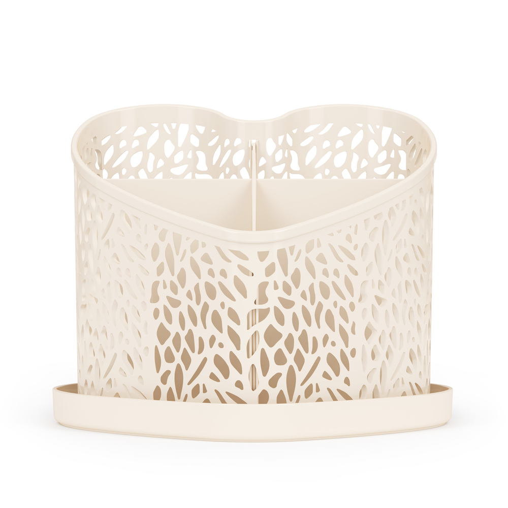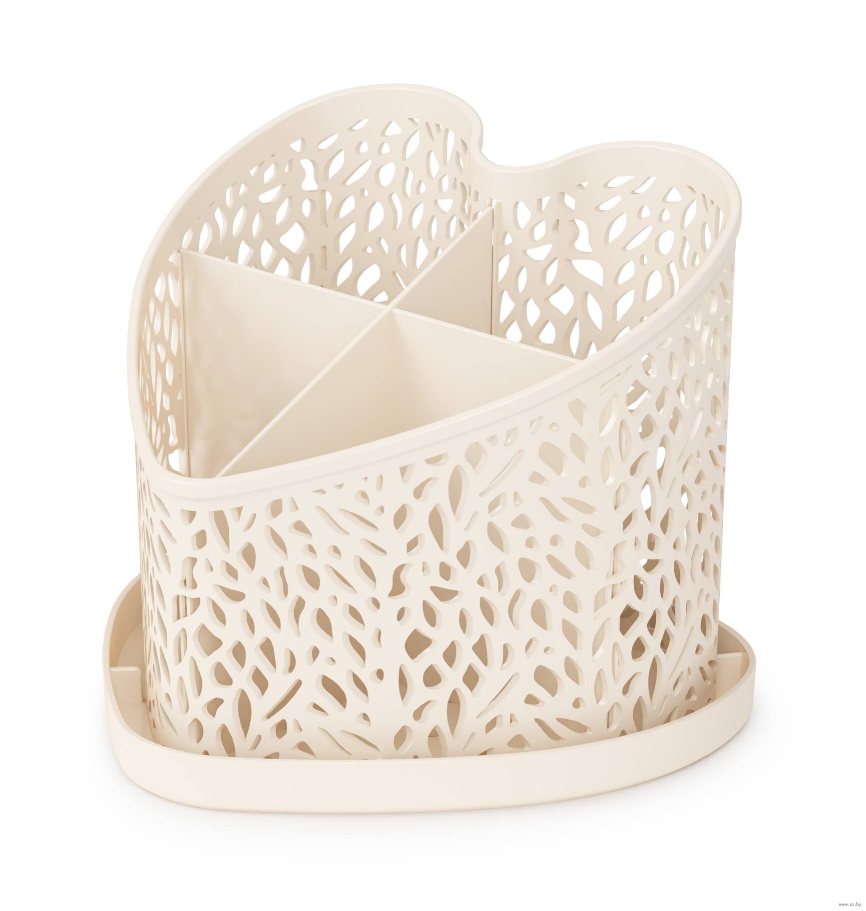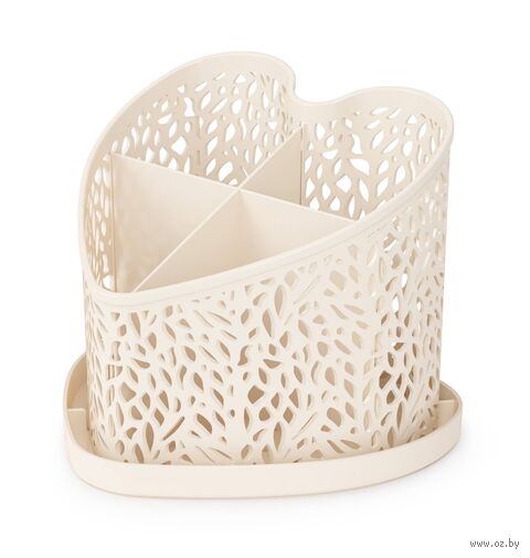 Пять отделений подставки вместят достаточное количество ложек, вилок, ножей и прочих кухонных принадлежностей. Поддон позволит собрать оставшиеся капли.