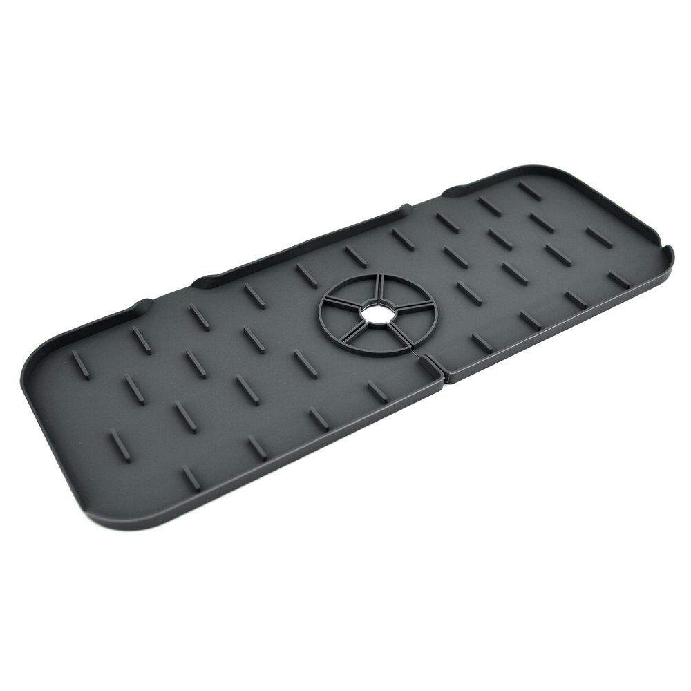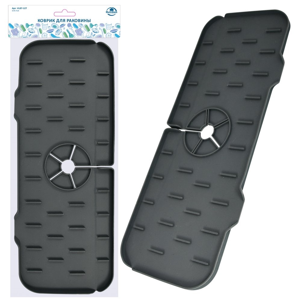 Гибкий материал и специальные сгибы бортика позволяют легко подгонять коврик под размер раковины, а также использовать его как удобный органайзер для губок, мыльниц, дозаторов, бытовых средств и других принадлежностей. Коврик имеет две ложбинки для слива, они предотвращают застой воды и образование плесени.
