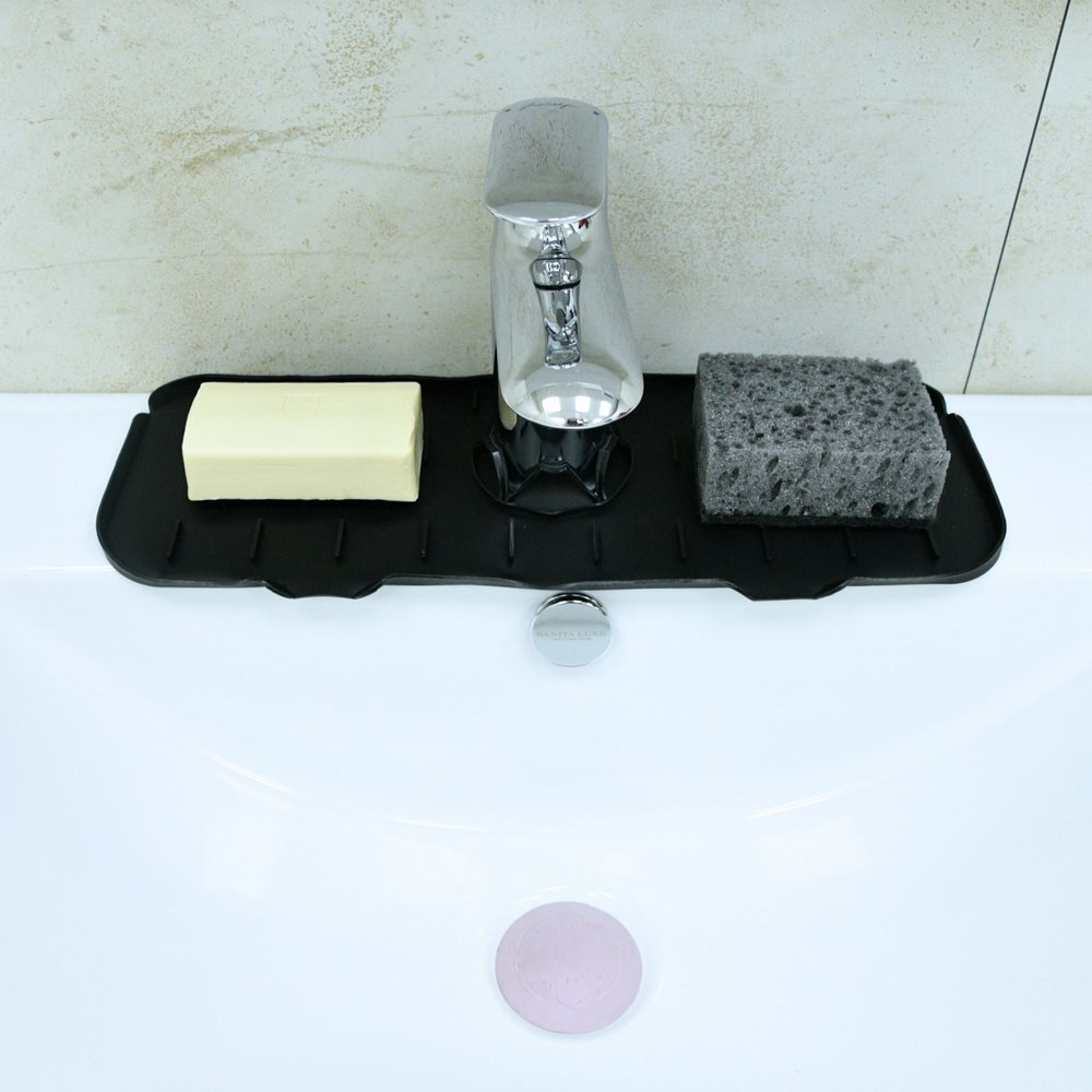 Для установки коврика не нужно снимать кран или смеситель, просто обогните его ковриком. Перед первым применением рекомендуется вымыть губкой или мягкой щеткой, можно с жидким моющим средством и сполоснуть проточной водой. Можно мыть в посудомоечной машине.
