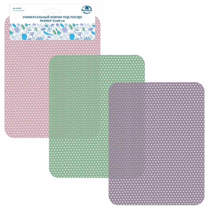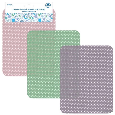 Коврик для сушки посуды выполнен из вспененного ПВХ. Материал впитывает излишки влаги, не скользит и не приклеивается к поверхности. Столешница не портится под воздействием влаги.
