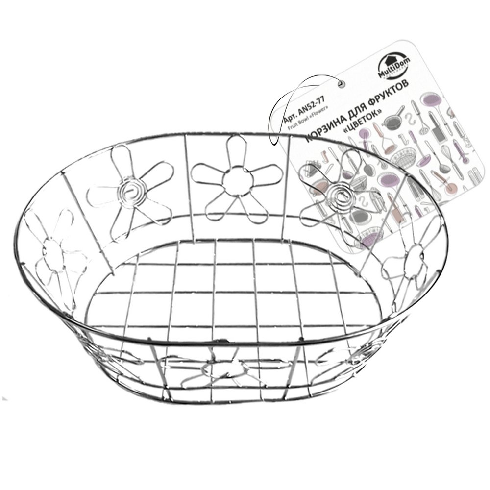 Изящная корзинка выполнена из стальной хромированной проволоки – прочного блестящего материала.