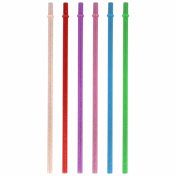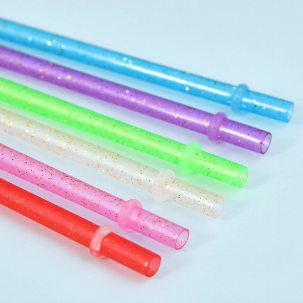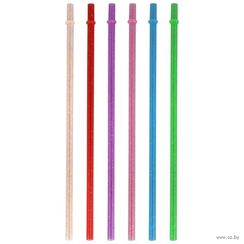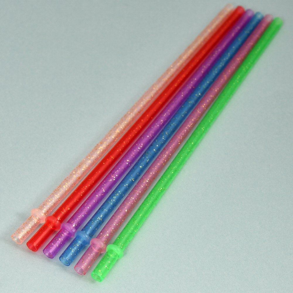 Цветовая гамма трубочек и оригинальный блестящий дизайн порадует ваших гостей и близких. В верхней части трубочек расположено кольцо-ограничитель для колпачка (приобретается отдельно).Рекомендуется помыть трубочки перед первым использованием. Трубочки можно использовать повторно, если тщательно промыть их в проточной воде, можно с использованием жидких моющих средств и просушить.