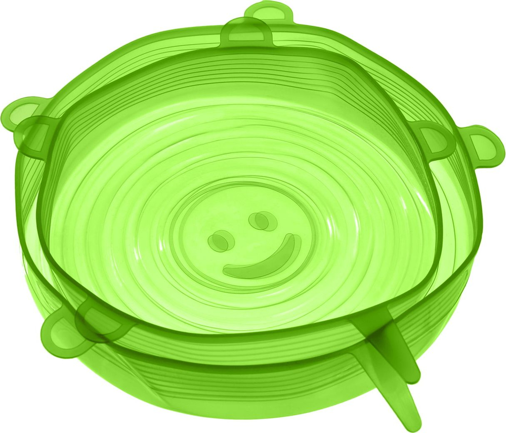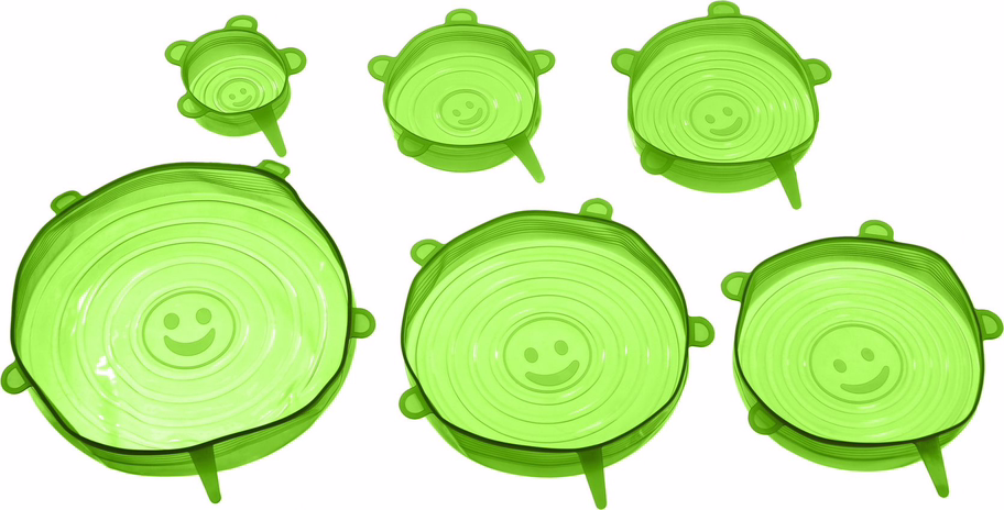 Не можете найти подходящую крышку? Используете неудобную одноразовую пленку? Кастрюля с объемной крышкой не помещается в холодильник? Нарезанный арбуз заветривается, а начатый лимон высыхает? Много задач – одно решение! Растягивающиеся силиконовые крышки решат все проблемы хранения продуктов! Просто натяните подходящую по размеру крышку на нужную поверхность. Крышки плотно прилегают к поверхности, создавая вакуум .